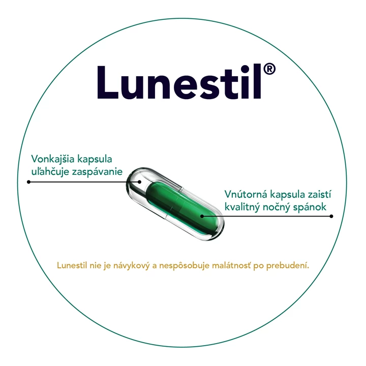 Lunestil je výživový doplnok vo forme inovatívnej duo kapsuly s technológiou postupného uvoľňovania. Obsahuje 4 jedinečné zložky prírodného pôvodu pre zdravý a kvalitný spánok.